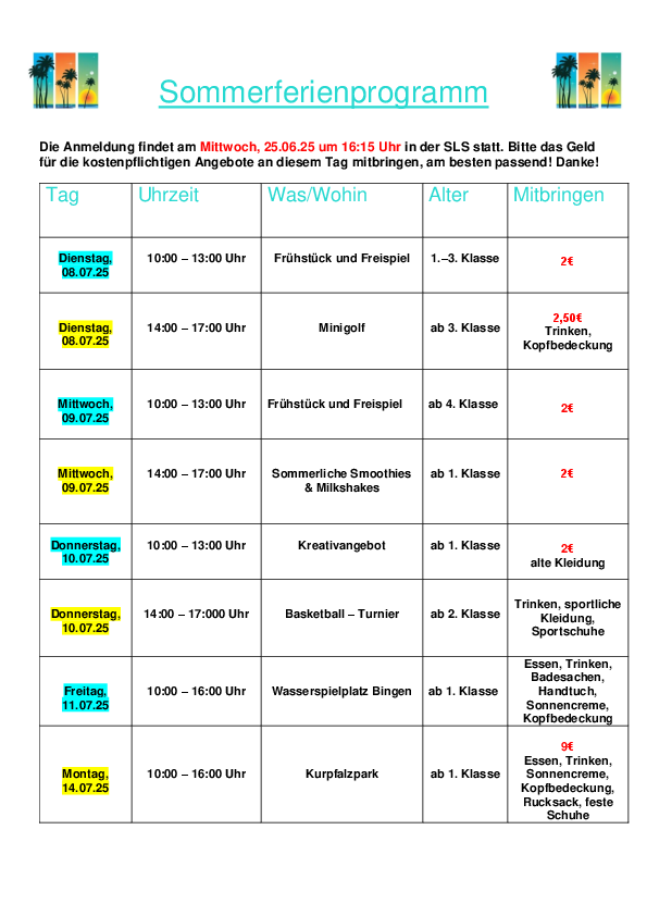 - Ferienprogramme in den Winter-, Oster-, Sommer- und Herbstferien