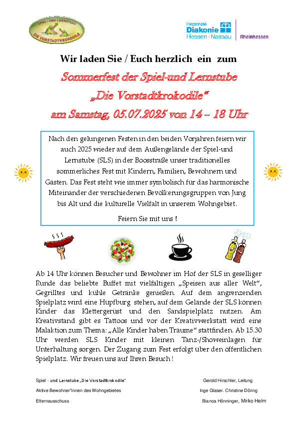 - Gemeinsame Aktionen mit Anwohnenden und Familien, z.B. Sommerfest, Pflanzaktionen, Ausflüge